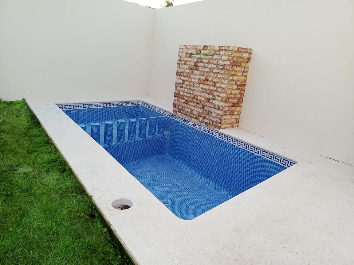 PLANTA BAJA:Garage, sala comedor, cocina, medio baño, área de lavado, patio con alberca, baño exterior.