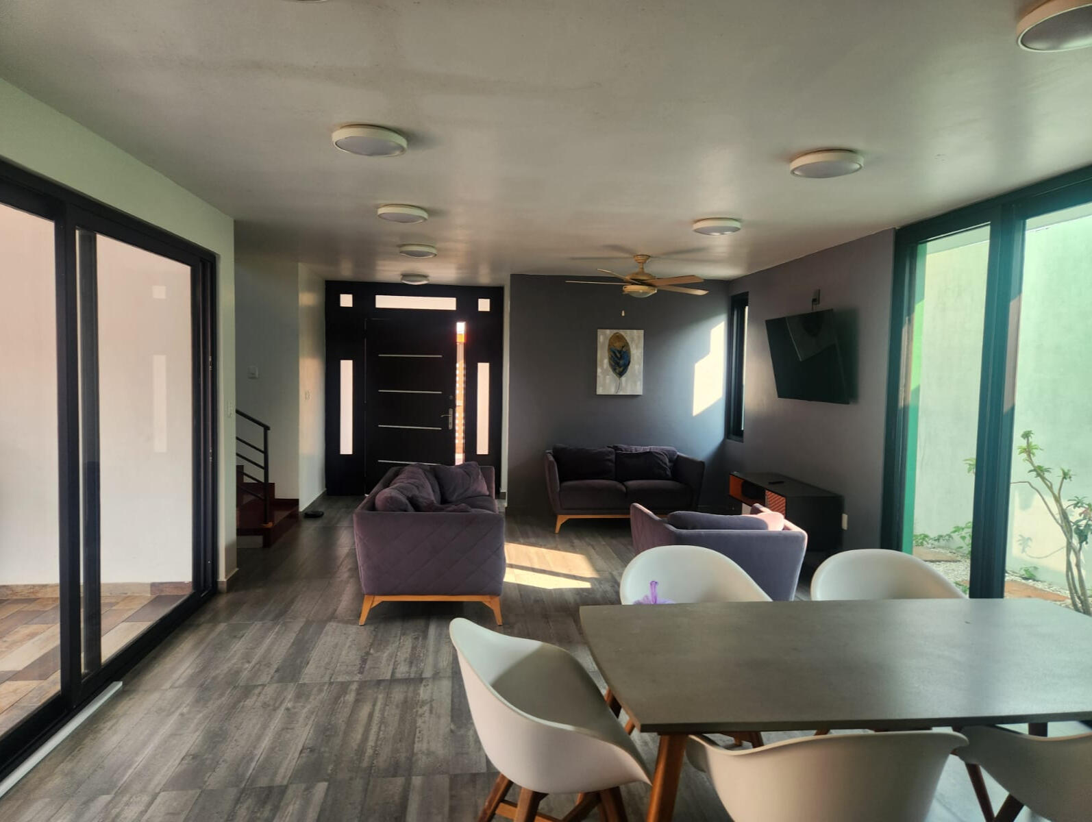 Habitación master con baño completo y balcón, dos habitaciones, baño completo compartido.